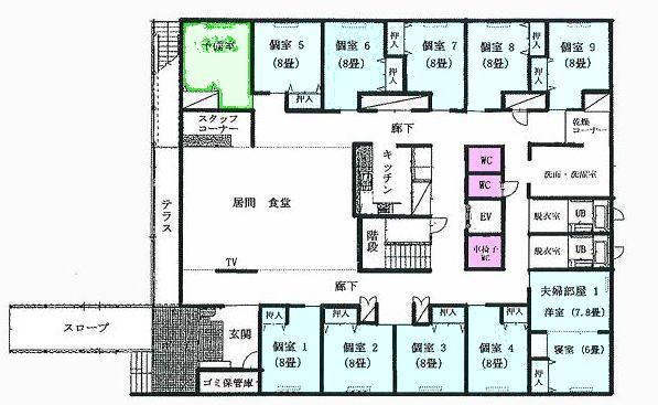 今回の施設は、2階建てとなっており、個室19室、夫婦部屋3室、計22室25名の定員となっております。