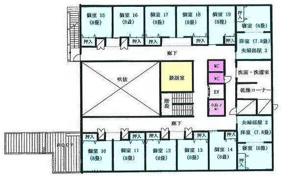 食堂・トイレ・洗面所・脱衣室・浴室・洗濯室・乾燥コーナーが共同使用となっております。